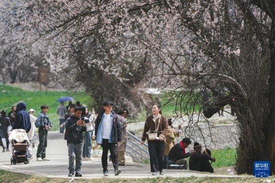 4月3日,游客在林芝第二十二屆桃花旅游文化節(jié)巴宜區(qū)分會場朵當(dāng)村觀景游玩。
