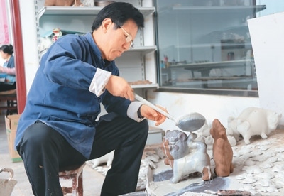 前些年,胡新明大膽嘗試,在泥里加入紙漿、棉花、面糊、糯米汁等,反復(fù)試驗,研制出“摔不爛”的泥塑;創(chuàng)新泥塑造型,讓各類產(chǎn)品推陳出新。