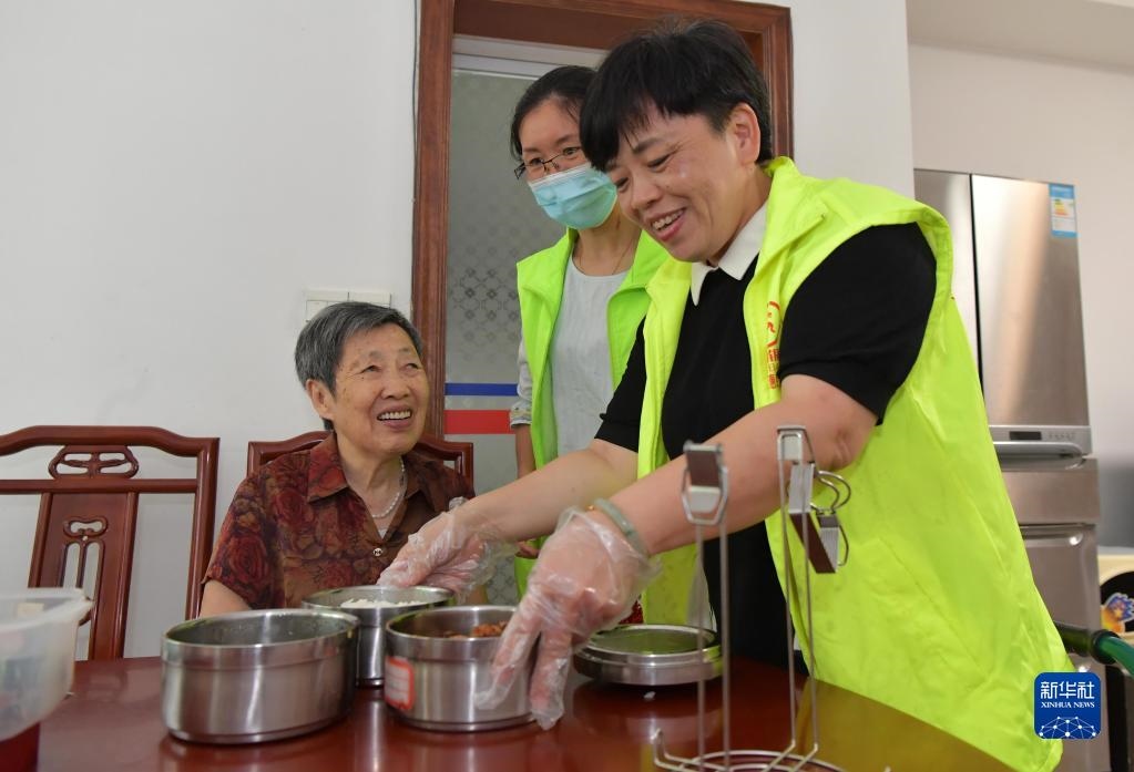 在江西省南昌市東湖區(qū)彭家橋街道文教路北社區(qū),“幸福食堂”的義工在給社區(qū)內(nèi)出行困難的老人提供送餐服務(wù)(2020年7月29日攝)。從2018年12月起,南昌市東湖區(qū)彭家橋街道在社區(qū)打造以黨建引領(lǐng)、社區(qū)主導、愛心企業(yè)贊助的“幸福食堂”,專門為社區(qū)獨居、孤寡及生活困難的老年人提供營養(yǎng)餐,以此進一步完善社區(qū)居家互助養(yǎng)老服務(wù)。新華社記者 彭昭之 攝
