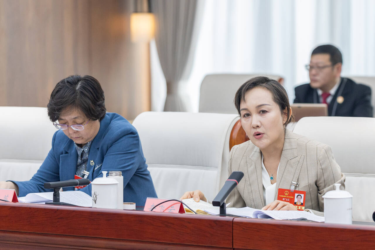 3月9日,全國(guó)人大代表孟達(dá)英(左)在審議“兩高”工作報(bào)告時(shí)建議,最高人民法院應(yīng)出臺(tái)有關(guān)破壞濕地行為定罪量刑標(biāo)準(zhǔn)的有關(guān)法律配套司法解釋。草原云記者 馬建兵 攝