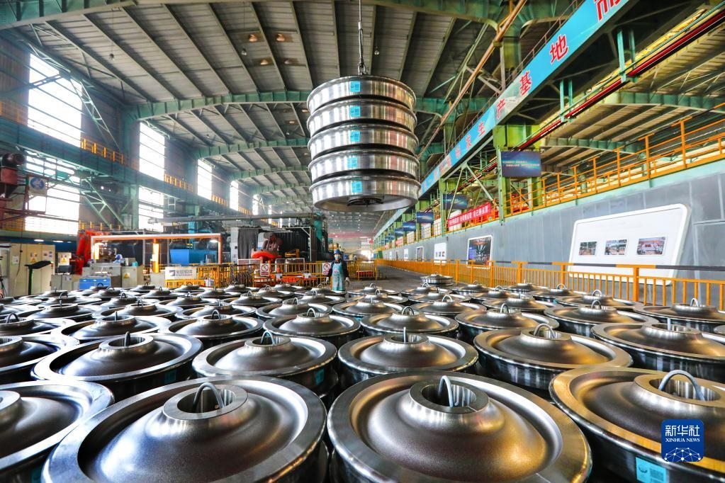 3月3日,在中國寶武馬鋼一車輪生產(chǎn)車間,成品車輪在吊裝準(zhǔn)備發(fā)貨。新華社發(fā)