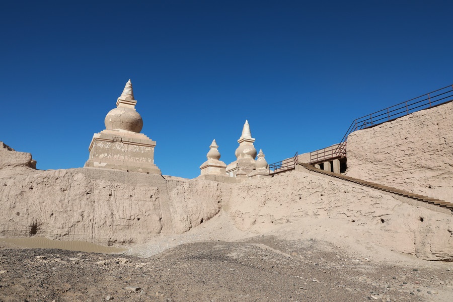 1372年,黑城被明朝大將馮勝所破,城址從此荒廢。邊塞詩人王維《使至塞上》“單車欲問邊,屬國過居延”中的居延,寫的就是這里的景象,“大漠孤煙直,長河落日圓”也因此成為千古名句。但誰又能想到,曾經(jīng)的居延綠州,會因為當年弱水(黑河,現(xiàn)額濟納河)的斷流而變成蒼茫大漠。更令人痛心的是,在城址荒廢500多年后,一群打著探險的旗號的“強盜”蜂擁而至,對黑城進行了瘋狂盜挖,大量西夏和蒙元時期的珍貴文物流失海外,成為國人心中永遠的痛。近年來,內蒙古加大了黑城的保護力度,希望籍此能夠早日重現(xiàn)昔日綠洲。