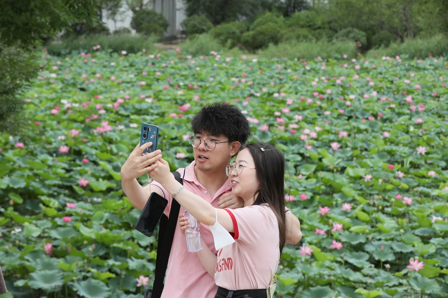 7月30日,呼和浩特青城公園的荷花進(jìn)入最佳觀賞期,吸引眾多游人前來打卡。